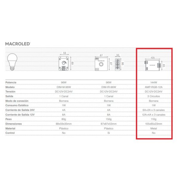 AMPLIFICADOR PARA CINTA LED 12-24 V RGB 10 MTS MACROLED
