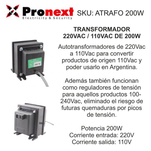 AUTOTRANSFORMADOR 220V A 110V DE 200W PRONEXT