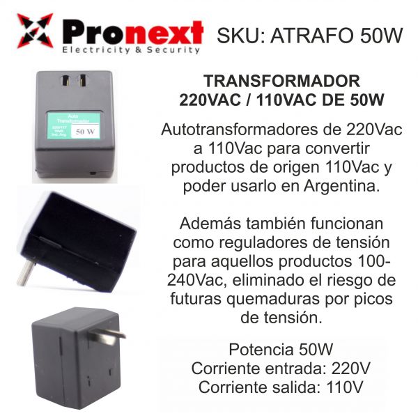 AUTOTRANSFORMADOR 220V A 110V DE 50W PRONEXT