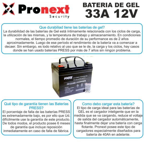 BATERIA DE GEL DE 12V 33 AH PRESS CICLO PROFUNDO