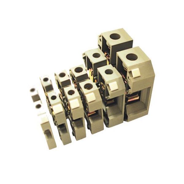 Bornes diseñdos para fijar en perfiles RD-AC/AL, con sistema de conexión por tornillo para aplicaciones indistriales. Este artefacto cuent acon sencillos ajustes mediante destornilladores noramles, tanto para tornillos de fijacion como para los accesorios. A su vez, posee un cuerpo aislante en poliamida 6,6 con receptaculo tipo embutido para simplificar la insercion de los conductores.