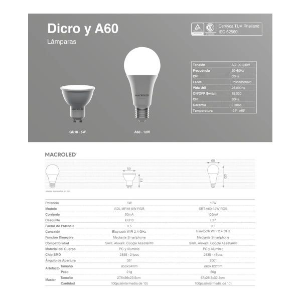 LAMPARA BULBO LED 12W SMART WIFI 1050 LUMENS - MACROLED