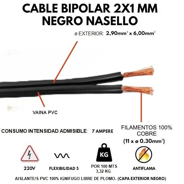 CABLE BIPOLAR 2X1 MM NEGRO X 100 MTS CONDUELEC