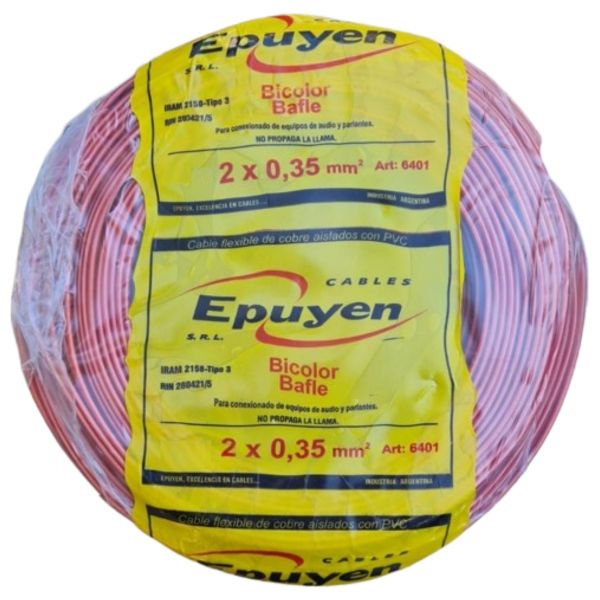 CABLE BIPOLAR BAFLE AUDIO BICOLOR ROJO Y NEGRO 0.35MM X METRO EPUYEN