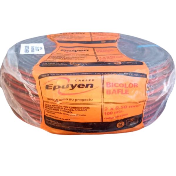 CABLE BIPOLAR BAFLE AUDIO BICOLOR ROJO Y NEGRO 0.50MM X 100 MTS EPUYEN