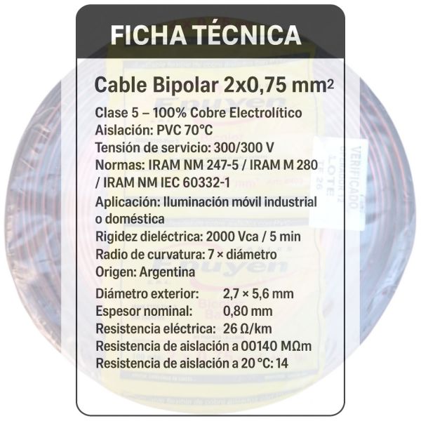 CABLE BIPOLAR BAFLE AUDIO BICOLOR ROJO Y NEGRO 0.75MM X 100 MTS EPUYEN