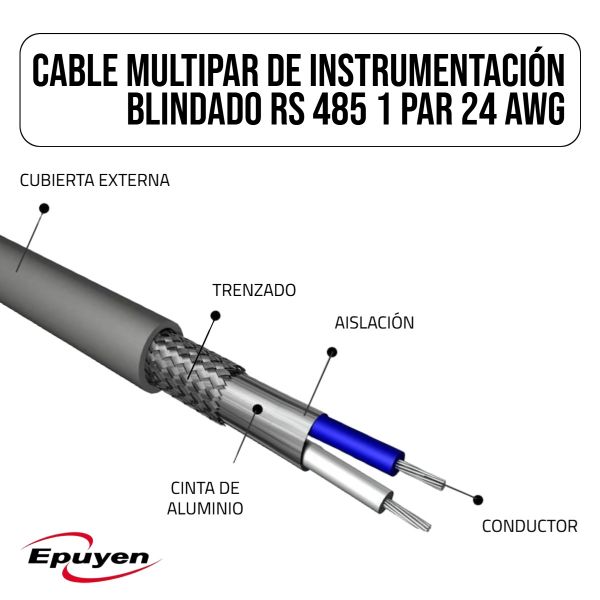 CABLE MULTIPAR DE INSTRUMENTACIÓN BLINDADO RS 485 1 PAR 24 AWG