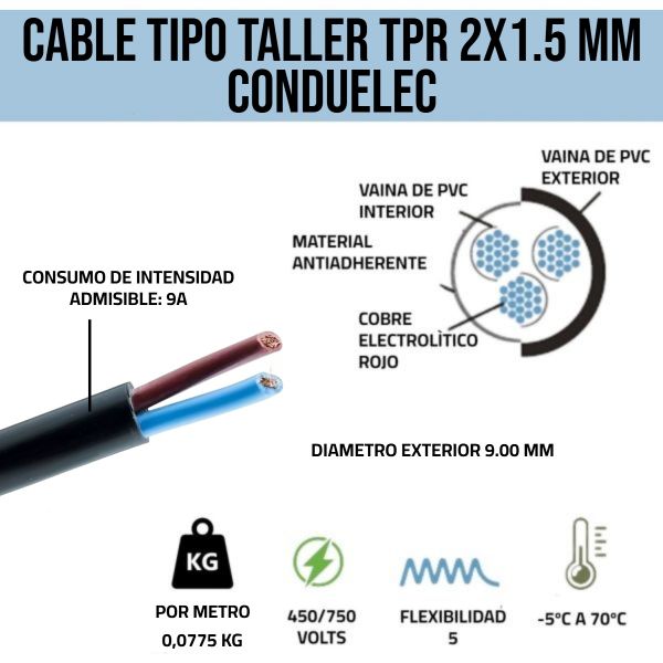 CABLE TIPO TALLER TPR 2X1.5 MM X METRO CONDUELEC