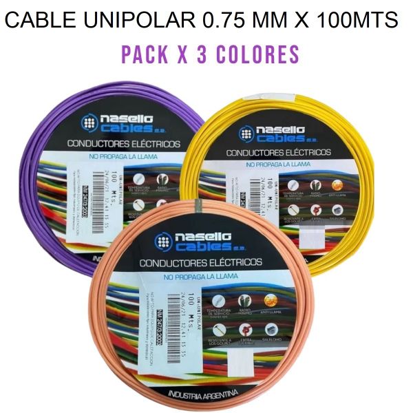 CABLE UNIPOLAR 0.75 MM X 100M PACK X 3 COLORES (NARANJA - VIOLETA - AMARILLO)
