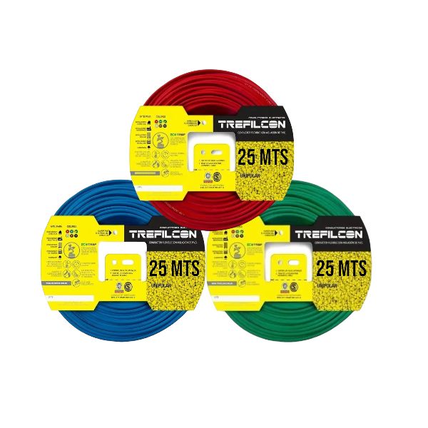 CABLE UNIPOLAR 1.5 MM TREFILCON X 25M PACK X 3 COLORES (ROJO- CELESTE - VERDE/AMARILLO)