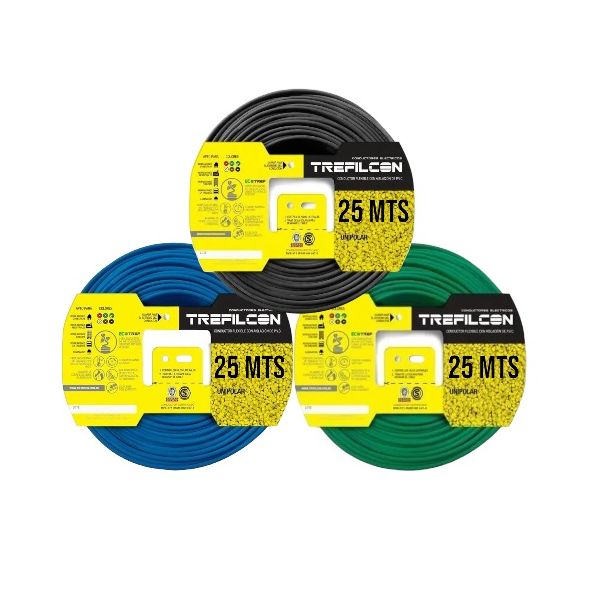 CABLE UNIPOLAR 2.5 MM TREFILCON X 25M PACK X 3 COLORES (NEGRO- CELESTE - VERDE/AMARILLO)