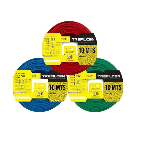 CABLE UNIPOLAR 4 MM TREFILCON X 10M PACK X 3 COLORES (ROJO- CELESTE - VERDE/AMARILLO)