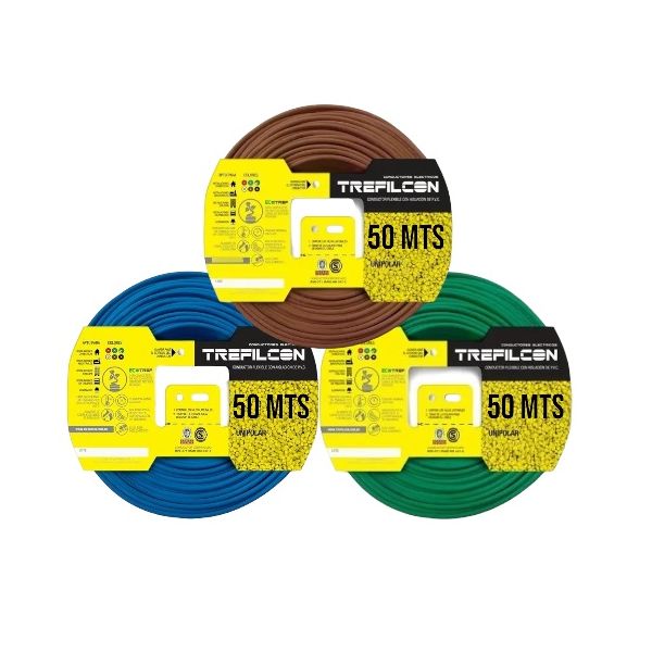 CABLE UNIPOLAR 4 MM TREFILCON X 50M PACK X 3 COLORES (MARRON - CELESTE - VERDE/AMARILLO)