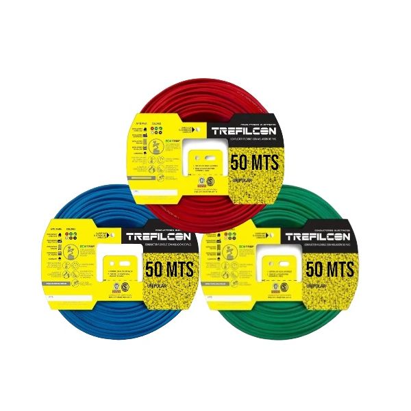CABLE UNIPOLAR 6 MM TREFILCON X 50M PACK X 3 COLORES (ROJO- CELESTE - VERDE/AMARILLO)