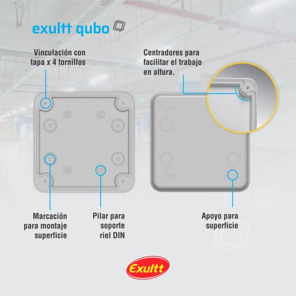 Las cajas de paso estancas de la nueva línea exultt qubo pueden ser utilizadas como cajas de pasaje y derivación, para redes eléctricas y de información, para montaje de equipamiento eléctrico, permitiendo organizar y proteger los conexionados, posibilitando el fácil acceso.