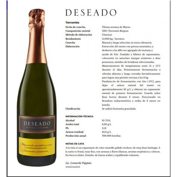 CHAMPAGNE DESEADO DULCE 750 ML