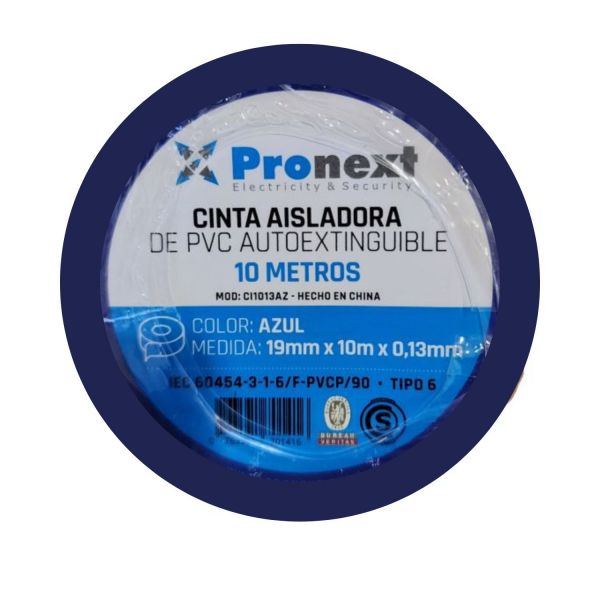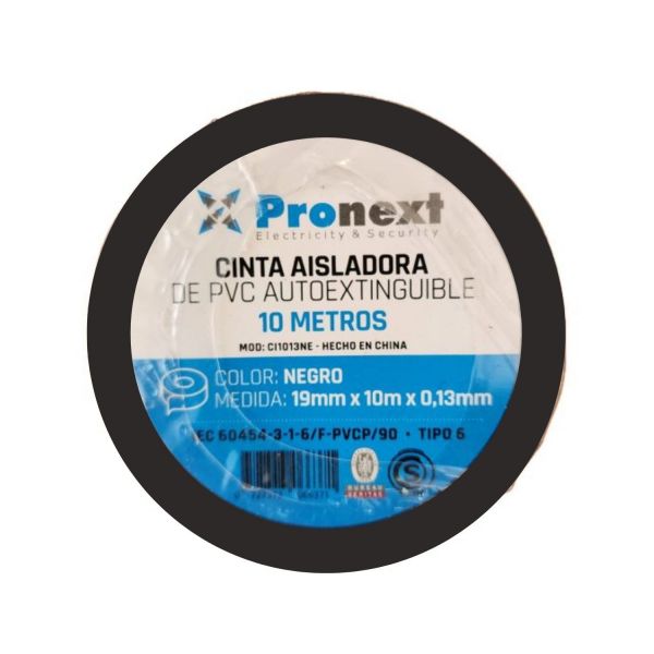 Cinta Aisladora de PVC PRONEXT 10 mts Aplicaciones: Aislaciones internas y externas de hasta 600V. · Protección externa en instalaciones de madia y alta tensión. · Identificación de cables (colores) - Armado de mazos de cables. · Enmascarar superficies y protegerlas da la abrasión, rayos UV, corrosión, humedad, etc.