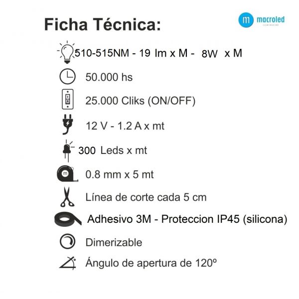 • colores disponiblesCalido (3000K), Frio (6500K), Rojo, Verde, Amarillo y Verde