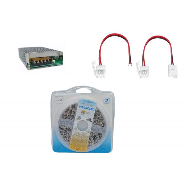 CINTA LED 5050 72W CALIDO 12V + FUENTE DE 12V COMPLETO MACROLED