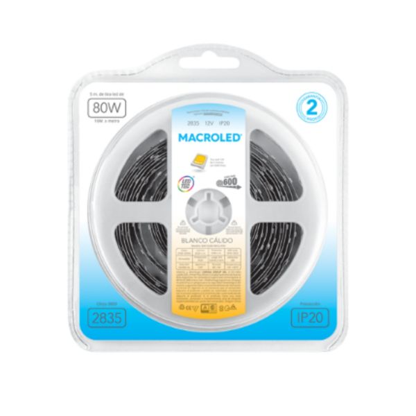 CINTA LED 80W 12V 2835 IP 20 X 5 MTS MACROLED