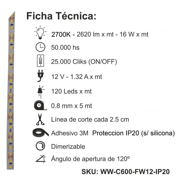 • colores disponiblesCalido (2700 K) y Frio (6500 K)