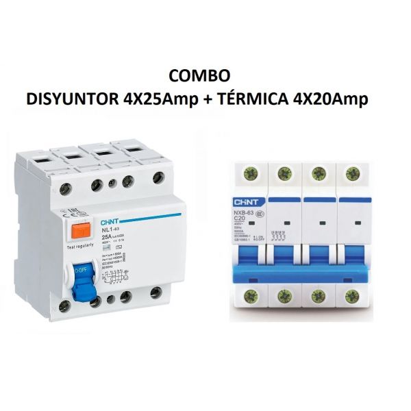 COMBO DISYUNTOR TETRAPOLAR 4X25 + TéRMICA TRIFASICO INDUSTRIAL 4X20