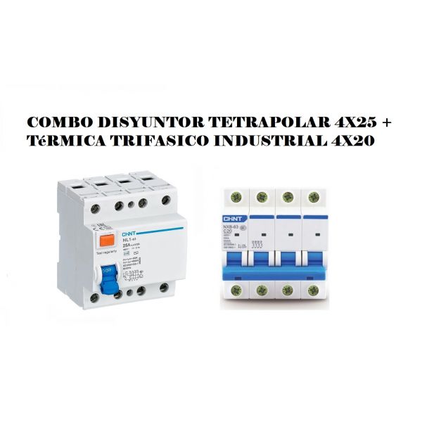 COMBO DISYUNTOR TETRAPOLAR 4X25 + TéRMICA TRIFASICO INDUSTRIAL 4X20A