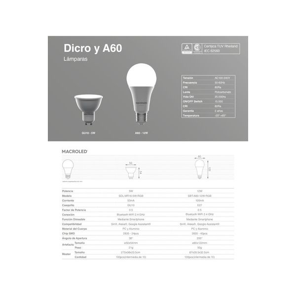 DICROICA LED SMART RGB 5W GU10 220V WIFI + BLUETOOTH MACROLED