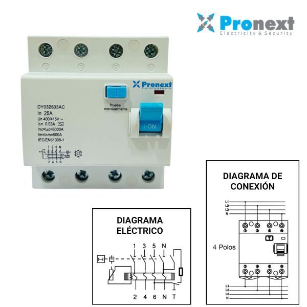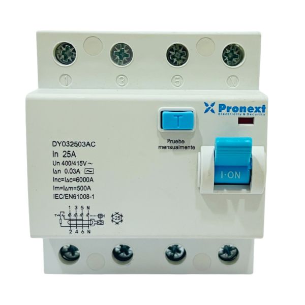 DISYUNTOR TETRAPOLAR 4X25A 30MA 6KA TIPO AC PRONEXT