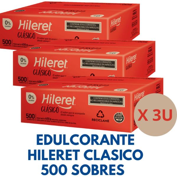 EDULCORANTE HILERET CLASICO 500 SOBRES X 3 UNIDADES
