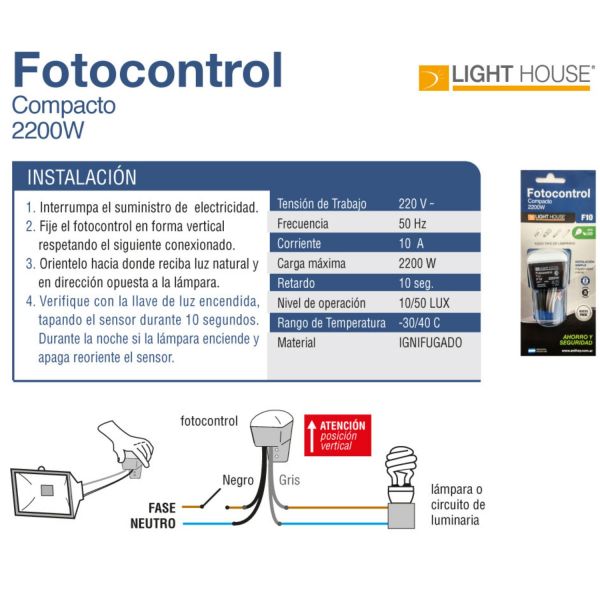 FOTOCONTROL 4 CABLES 2500 W COMPACTO LIGHT HOUSE