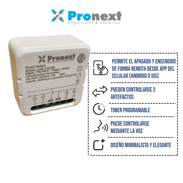 El Interruptor 2 Salidas Smart WiFi 16A de Pronext es una excelente opción para controlar tus dispositivos eléctricos de manera inteligente.