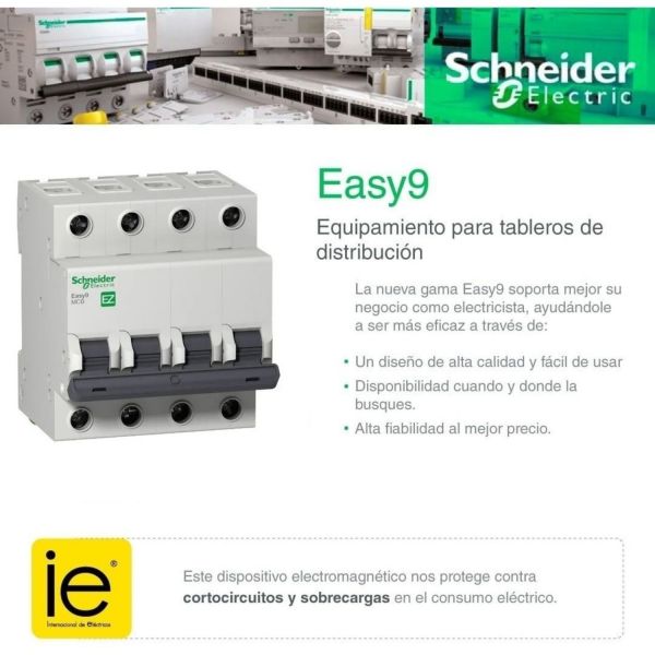 INTERRUPTOR TERMOMAGNETICO 4X10 SCHNEIDER - 4.5KA CURVA C E9