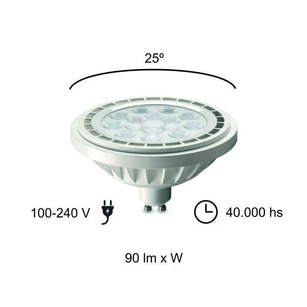 LAMPARA AR111 LED 11W GU10 DE PVC BLANCA MACROLED