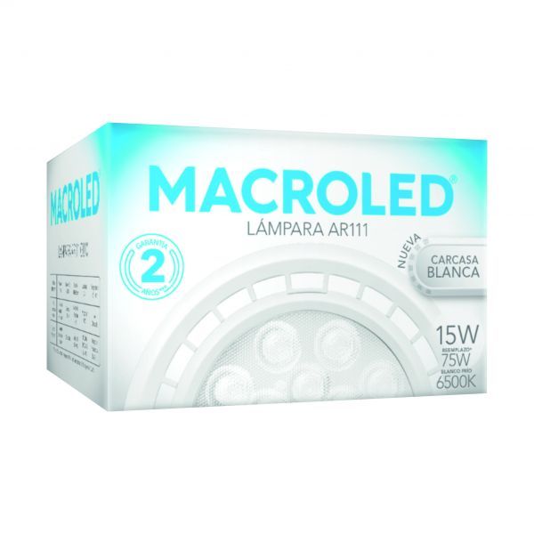 LAMPARA AR111 LED 15W 25º GU10 DE PVC BLANCA MACROLED