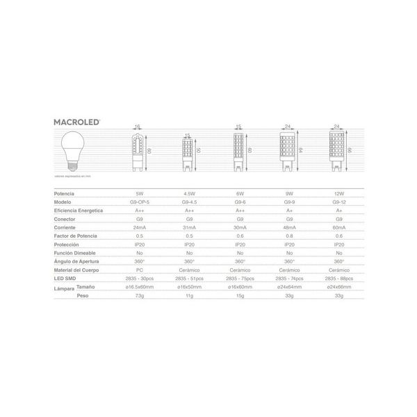 LAMPARA BIPIN OPAL 5W G9 220V MACROLED