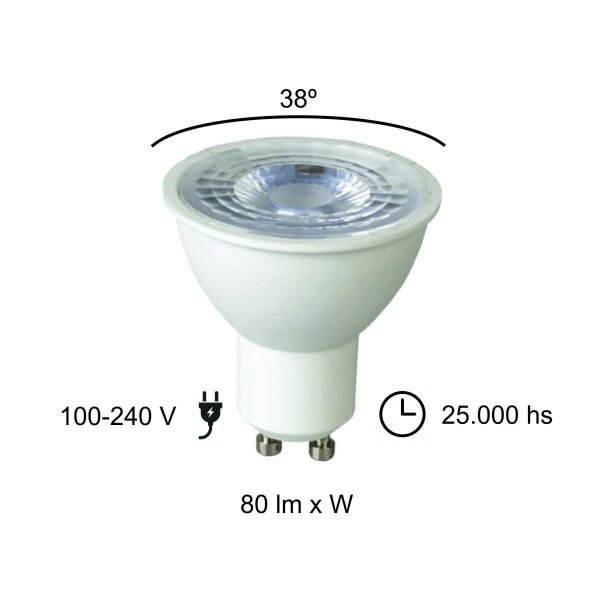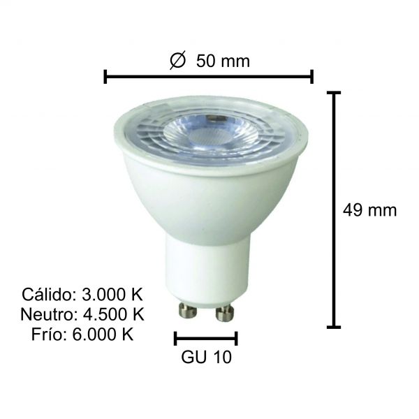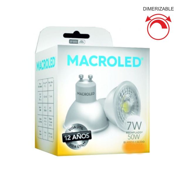 LAMPARA DICROICA LED 7W GU10 DE PVC DIMERIZABLE MACROLED