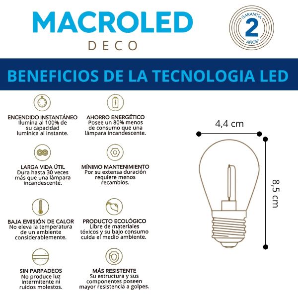 LAMPARA GOTA FILAMENTO LED 0.65W E27 MACROLED