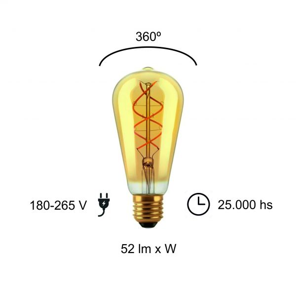 LAMPARA PERA GOLDEN FILAMENTO LED 5W E27 MACROLED