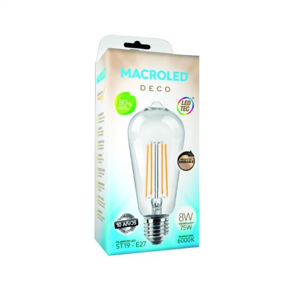 LAMPARA VINTAGE FILAMENTO PERA LED 8W E27 DIMERIZABLE MACROLED