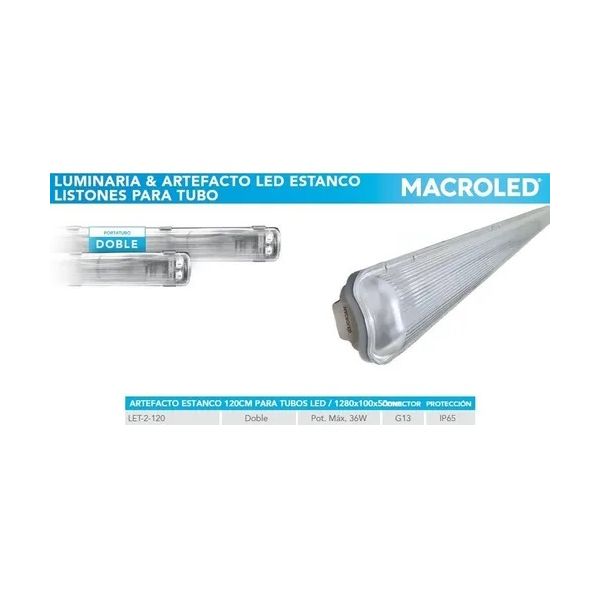 LUMINARIA ESTANCO P/ 2 TUBOS LED DE 18W 1.20 MTS MACROLED