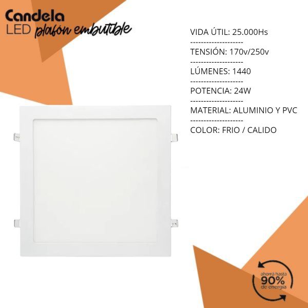 PANEL LED 24W CUADRADO EMBUTIR CANDELA