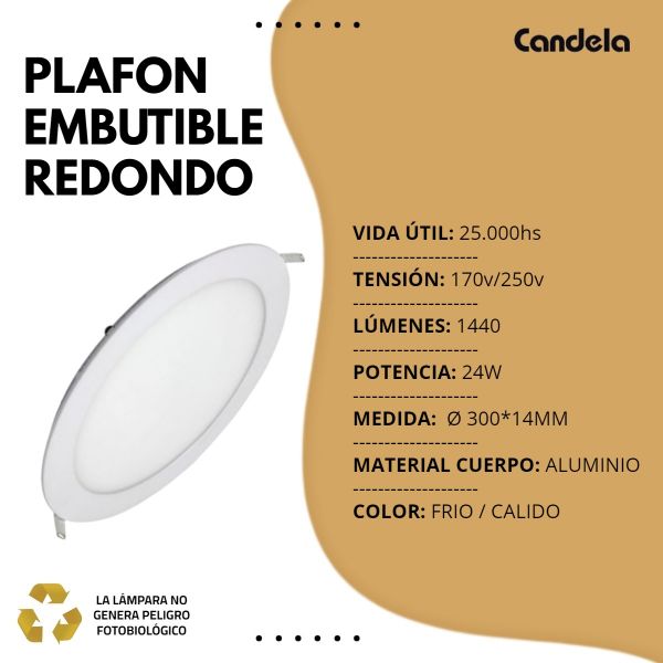 PANEL LED 24W REDONDO EMBUTIR CANDELA