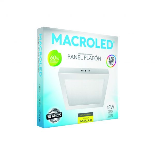 PANEL LED APLICAR CUADRADO 18W MACROLED