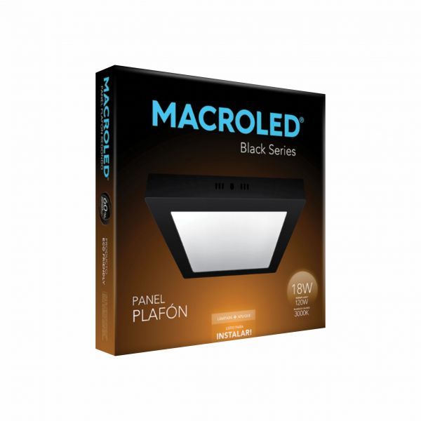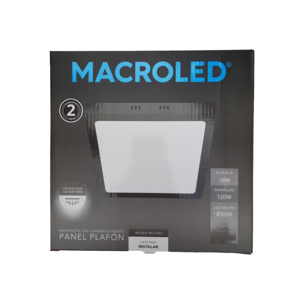 PANEL LED APLICAR CUADRADO 18W NEGRO MACROLED