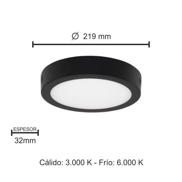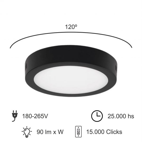 PANEL LED APLICAR REDONDO 18W NEGRO MACROLED