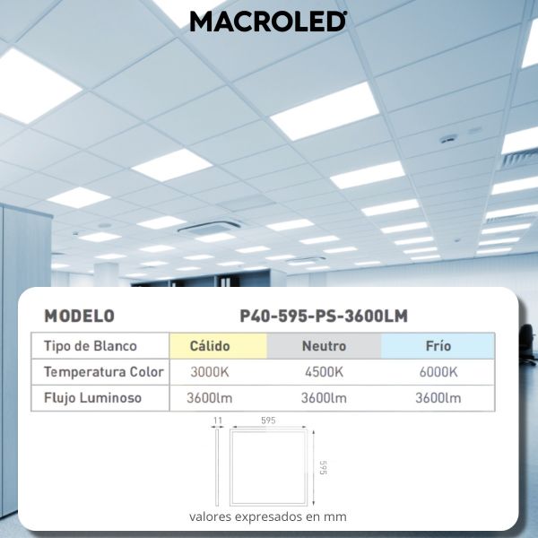 PANEL LED CUADRADO 40W 595X595 MM MACROLED