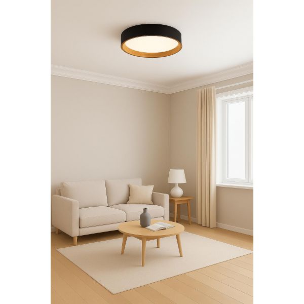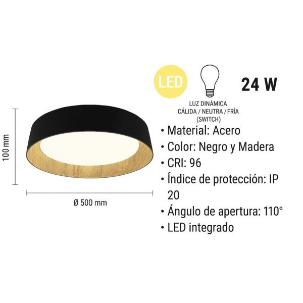 PLAFON LED ACERO NEGRO/MADERA 24W DAKOTA DISEÑO MODERNO LEUK