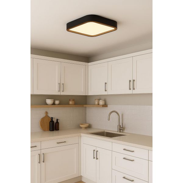 PLAFON LED ACERO NEGRO Y MADERA 45W GALACTIC DISEÑO CUADRADO MODERNO LEUK