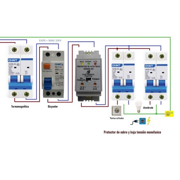 ESTE MODULO DE FÁCIL INSTALACIÓN PERMITE PROTEGER SUS EQUIPOS HASTA 20A (+- 4500W ). SE INSTALA FÁCILMENTE EN EL MISMO TABLERO DONDE ESTÁN LAS TÉRMICAS Y/O DISYUNTOR Y PROTEGE SUS APARATOS FRENTE A BAJAS DE TENSIÓN O SOBRE TENSIÓN.